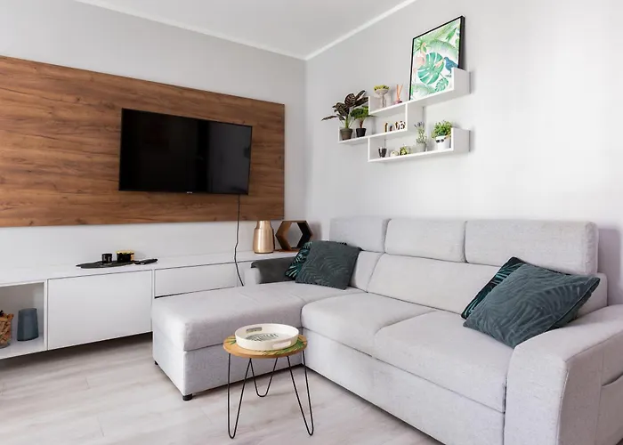 ベッドルーム1室のPrzymorze Modern Apartment By Bookinghost グダニスクはバルティック・オペラから4.5キロメートルで、グダンスキ動物園などの家族連れに人気のスポットから自動車で10分以内の場所にあります。 Wi-Fiと無料の専用駐車場は、顧客に必須の設備のひとつです。